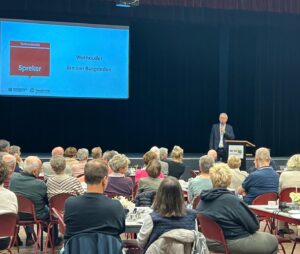 De bijeenkomst werd vakkundig aan elkaar gepraat door Jan van Dijk, die namens de Seniorenraad als gespreksleider optrad. Hij ging als eerste in gesprek met Bert van Boxmeer, voorzitter van de Seniorenraad. Bert benadrukte het belang van de verkeersmarkt: het delen van kennis, het vergroten van bewustwording en het stimuleren van veilig verkeersgedrag onder ouderen. De samenleving verandert, het verkeer wordt drukker, en daarom is het essentieel om senioren goed te blijven informeren.